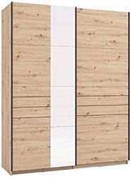 korpus a středový pás v bílé barvě, přední strany v dekoru dub artisan, vč. 2 šatních tyčí a 2 vložených polic, Š/V/H: cca 215/210/58 cm,