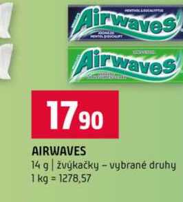 Aktuální slevu na AIRWAVES 14 g žvýkačky vybrané druhy zjistíte jednoduše nastavením Strážce slev .