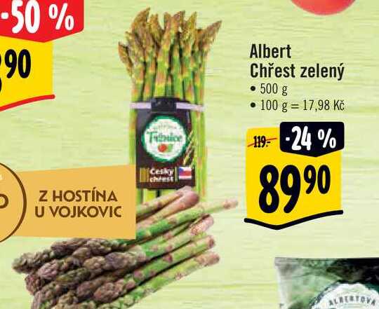 Aktuální slevu na Albert Chřest zelený • 500 g zjistíte jednoduše nastavením Strážce slev .