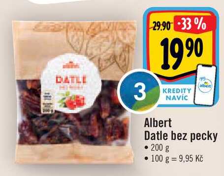 Aktuální slevu na Albert Datle bez pecky, 200 g zjistíte jednoduše nastavením Strážce slev .