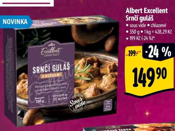 Aktuální slevu na Albert Excellent Srnčí guláš, 350 g zjistíte jednoduše nastavením Strážce slev .