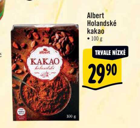Aktuální slevu na Albert Holandské kakao 100 g zjistíte jednoduše nastavením Strážce slev .