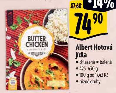 Aktuální slevu na Albert Hotová jídla, 425-430 g zjistíte jednoduše nastavením Strážce slev .