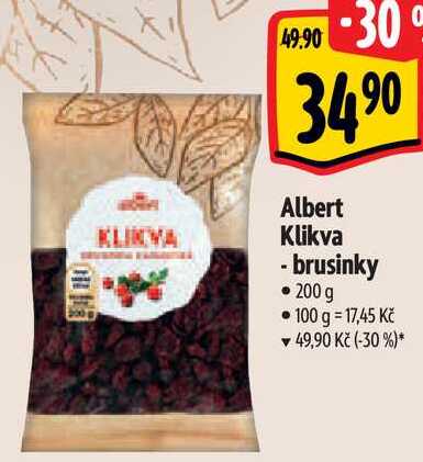 Aktuální slevu na Albert Klikva - brusinky, 200 g zjistíte jednoduše nastavením Strážce slev .