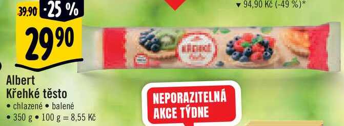 Aktuální slevu na Albert Křehké těsto, 350 g zjistíte jednoduše nastavením Strážce slev .