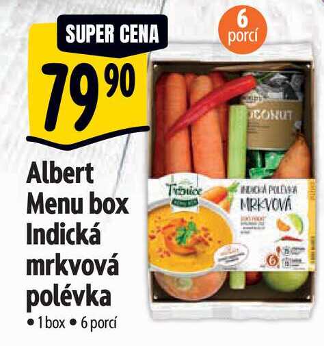 Aktuální slevu na Albert Menu box Indická mrkvová polévka 1 box zjistíte jednoduše nastavením Strážce slev .