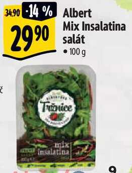 Aktuální slevu na Albert Mix Insalatina salát, 100 g zjistíte jednoduše nastavením Strážce slev .