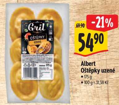 Aktuální slevu na Albert Oštěpky uzené, 175 g zjistíte jednoduše nastavením Strážce slev .