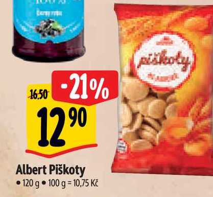 Aktuální slevu na Albert Piškoty 120 g zjistíte jednoduše nastavením Strážce slev .