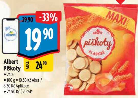 Aktuální slevu na Albert Piškoty, 240 g zjistíte jednoduše nastavením Strážce slev .