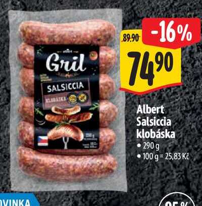 Aktuální slevu na Albert Salsiccia klobáska, 290 g zjistíte jednoduše nastavením Strážce slev .