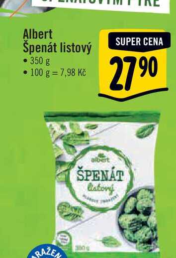 Aktuální slevu na Albert Špenát listový 350 g zjistíte jednoduše nastavením Strážce slev .