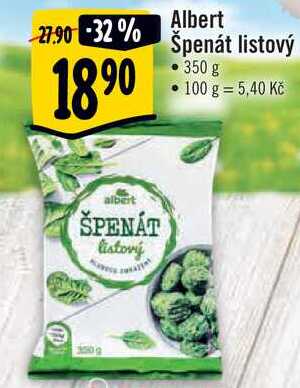 Aktuální slevu na Albert Špenát listový, 350 g zjistíte jednoduše nastavením Strážce slev .