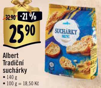 Aktuální slevu na Albert Tradiční suchárky, 140 g zjistíte jednoduše nastavením Strážce slev .