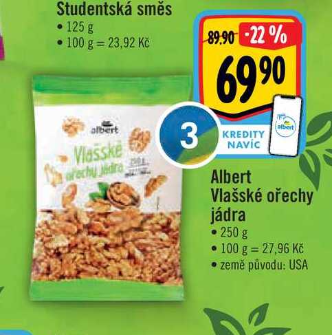 Aktuální slevu na Albert Vlašské ořechy jádra 250 g zjistíte jednoduše nastavením Strážce slev .