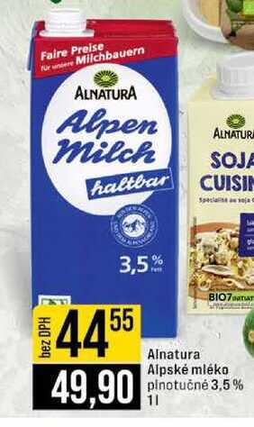 Aktuální slevu na Alnatura Alpské mléko plnotučné 3,5% 1l zjistíte jednoduše nastavením Strážce slev .