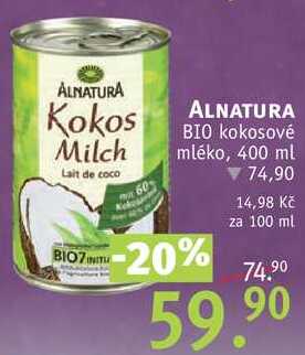 Aktuální slevu na ALNATURA BIO kokosové mléko, 400 ml zjistíte jednoduše nastavením Strážce slev .
