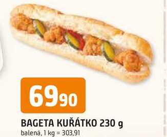 Aktuální slevu na BAGETA KUŘÁTKO 230 g balená zjistíte jednoduše nastavením Strážce slev .