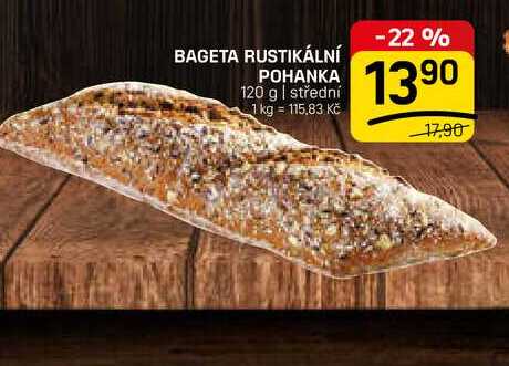 Aktuální slevu na BAGETA RUSTIKÁLNÍ POHANKA 120 g zjistíte jednoduše nastavením Strážce slev .