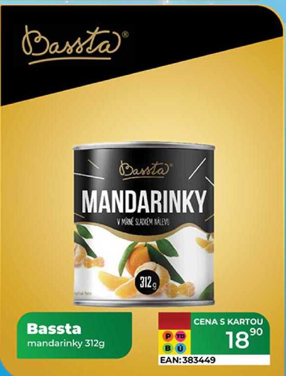 Aktuální slevu na Bassta mandarinky 312g zjistíte jednoduše nastavením Strážce slev .