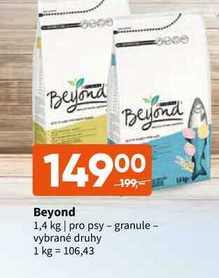 Aktuální slevu na Beyond 1,4 kg pro psy - granule - vybrané druhy zjistíte jednoduše nastavením Strážce slev .