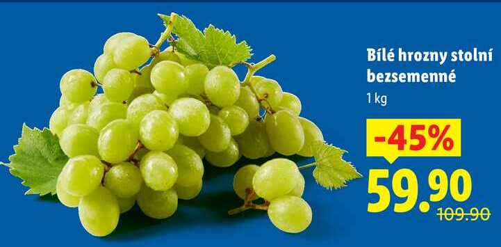 Aktuální slevu na Bílé hrozny stolní bezsemenné, 1 kg zjistíte jednoduše nastavením Strážce slev .