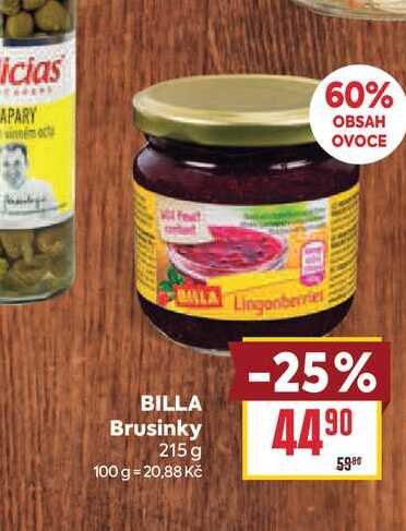 Aktuální slevu na BILLA Brusinky 215 g zjistíte jednoduše nastavením Strážce slev .