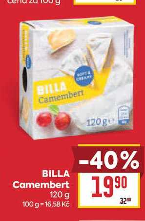 Aktuální slevu na BILLA Camembert 120 g zjistíte jednoduše nastavením Strážce slev .