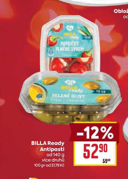 Aktuální slevu na BILLA Ready Antipasti od 140 g zjistíte jednoduše nastavením Strážce slev .