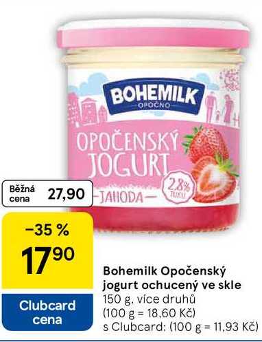 Aktuální slevu na Bohemilk Opočenský jogurt ochucený ve skle, 150 g zjistíte jednoduše nastavením Strážce slev .
