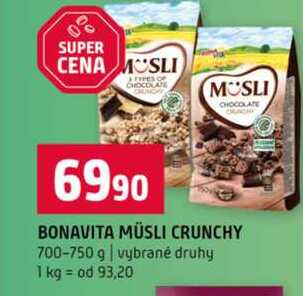 Aktuální slevu na BONAVITA MÜSLI CRUNCHY 700-750 g vybrané druhy zjistíte jednoduše nastavením Strážce slev .