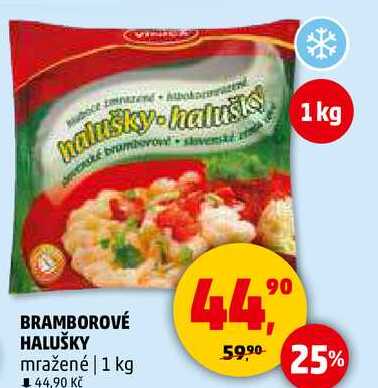 Aktuální slevu na BRAMBOROVÉ HALUŠKY mražené, 1 kg zjistíte jednoduše nastavením Strážce slev .