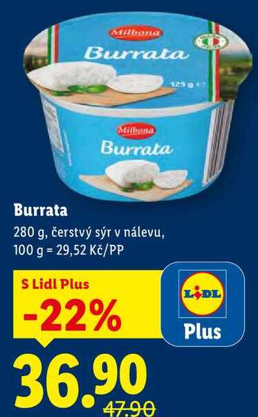 Aktuální slevu na Burrata, 280 g zjistíte jednoduše nastavením Strážce slev .