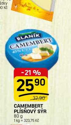 Aktuální slevu na CAMEMBERT PLÍSŇOVÝ SÝR 80 g zjistíte jednoduše nastavením Strážce slev .