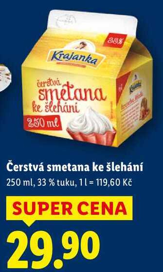 Aktuální slevu na Čerstvá smetana ke šlehání, 250 ml zjistíte jednoduše nastavením Strážce slev .