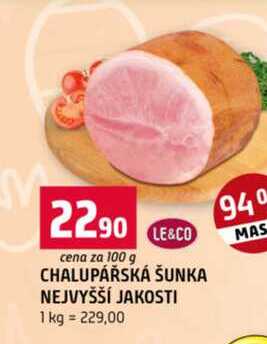 Aktuální slevu na CHALUPÁŘSKÁ ŠUNKA NEJVYŠŠÍ JAKOSTI 100g zjistíte jednoduše nastavením Strážce slev .