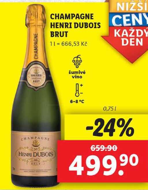 Aktuální slevu na CHAMPAGNE HENRI DUBOIS BRUT, 0,75 l zjistíte jednoduše nastavením Strážce slev .