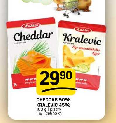 Aktuální slevu na CHEDDAR 50% KRALEVIC 45% 100 g zjistíte jednoduše nastavením Strážce slev .