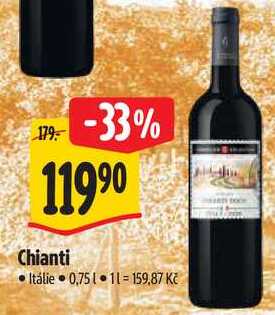 Aktuální slevu na Chianti, 0,75 l zjistíte jednoduše nastavením Strážce slev .