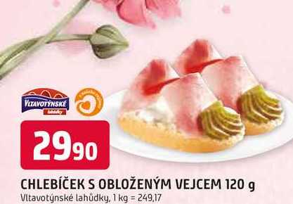 Aktuální slevu na CHLEBÍČEK S OBLOŽENÝM VEJCEM 120 g zjistíte jednoduše nastavením Strážce slev .