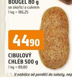 Aktuální slevu na CIBULOVÝ CHLÉB 500 g zjistíte jednoduše nastavením Strážce slev .