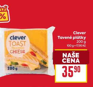 Aktuální slevu na Clever Tavené plátky 200 g zjistíte jednoduše nastavením Strážce slev .