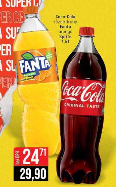 Aktuální slevu na Coca-Cola různé druhy Fanta orange Sprite 1,5l zjistíte jednoduše nastavením Strážce slev .