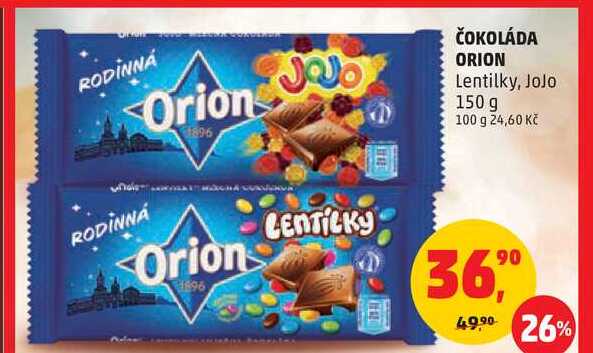 Aktuální slevu na ČOKOLÁDA ORION, 150 g zjistíte jednoduše nastavením Strážce slev .