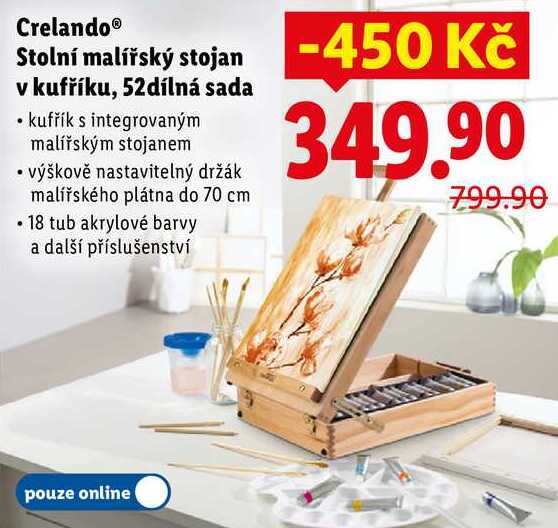Aktuální slevu na Crelando Stolní malířský stojan v kufříku, 52dílná sada zjistíte jednoduše nastavením Strážce slev .