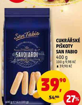 Aktuální slevu na CUKRÁŘSKÉ PIŠKOTY SAN FABIO, 400 g zjistíte jednoduše nastavením Strážce slev .