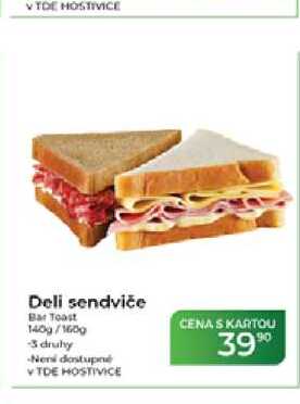 Aktuální slevu na Deli sendviče Bar Toast 140g/160g zjistíte jednoduše nastavením Strážce slev .