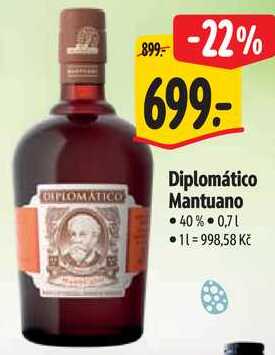 Aktuální slevu na Diplomático Mantuano, 0,7 l zjistíte jednoduše nastavením Strážce slev .