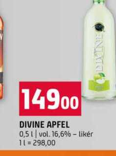 Aktuální slevu na DIVINE APFEL 0,5l vol. 16,6%- likér zjistíte jednoduše nastavením Strážce slev .