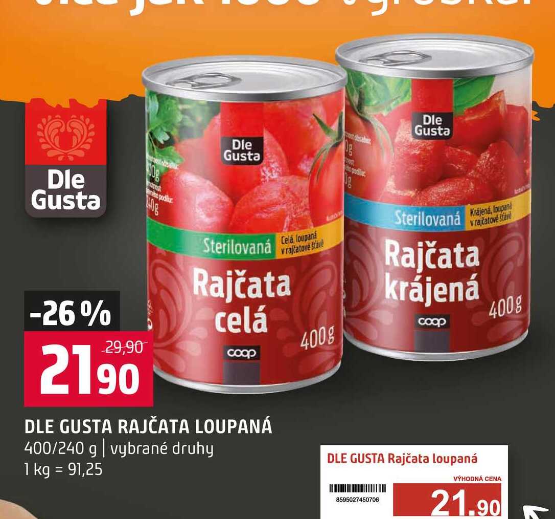 Aktuální slevu na DLE GUSTA RAJČATA LOUPANÁ 400/240 g zjistíte jednoduše nastavením Strážce slev .